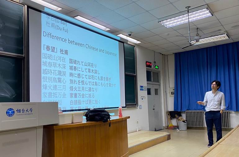他还谈到了日本大学的构成形式、申请研究生的途径、奖学金类别等留学知识。他饶有兴趣地提及了李白、杜甫等诗人,着重解释了杜甫的名作《春望》。日本高考的日本国语200分中,汉语古文占50分。因此,想要在高考中取得好成绩,两国高中生可能都需要背诵一些古诗词。
