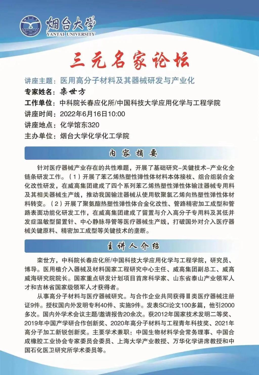 化院学术报告|医用高分子材料及其机械研发与产业化