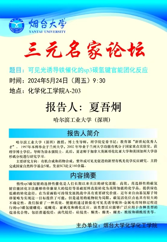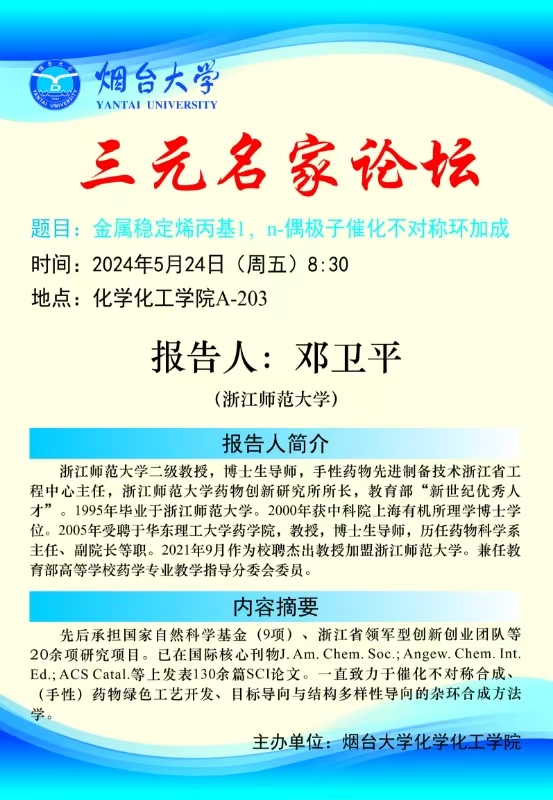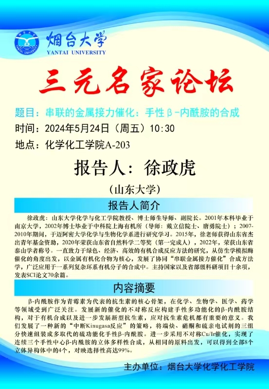 三元名家|《金属稳定烯丙基1,n-偶极子催化不对称环加成》、《可见光诱导铁催化的sp3碳氢键官能团化反应》及《串联的金属接力催化:手性B-内酰胺的合成》