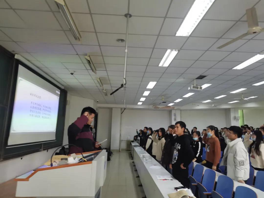 而后,院团委老师们对20级学生进行了重要的诚信教育,20级学生认真听讲,并在领誓人的领誓下齐举右拳庄严宣誓,展示了学子们对于诚信考试的支持与坚定。“ 我宣誓:牢记师长嘱托,不负烟大厚望;认真规范答题,严守考场纪律;守住人生底线,公平参与竞争;珍惜人格名誉,做光荣化院人!”