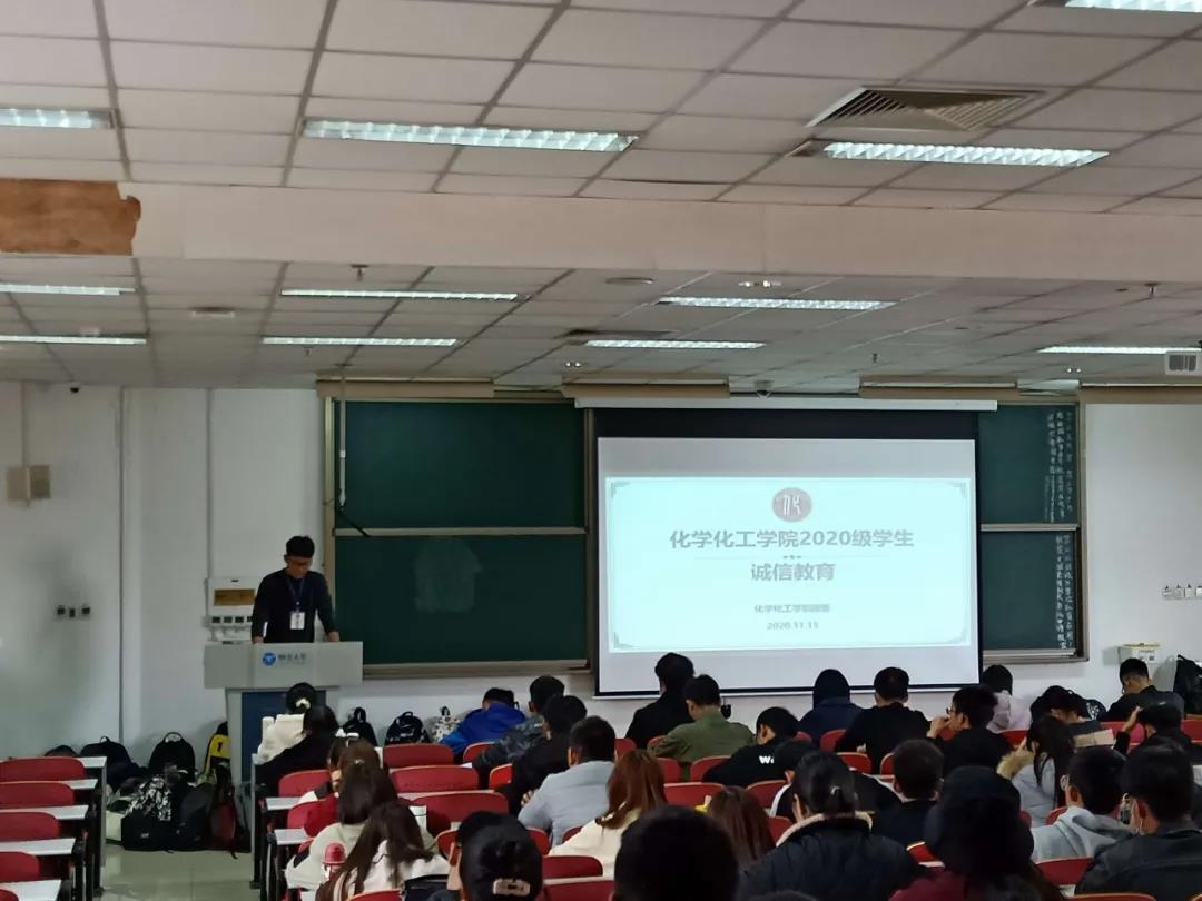 为加强学风建设,落实“三无”建设工程,化学化工学院于11月15日下午在综合楼组织20级学生实行“无人监考”期中考试,同时为进一步加强学院学风建设,进行以“三要”为主要内容的学风建设月启动仪式。