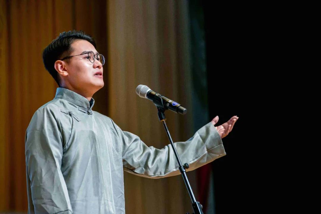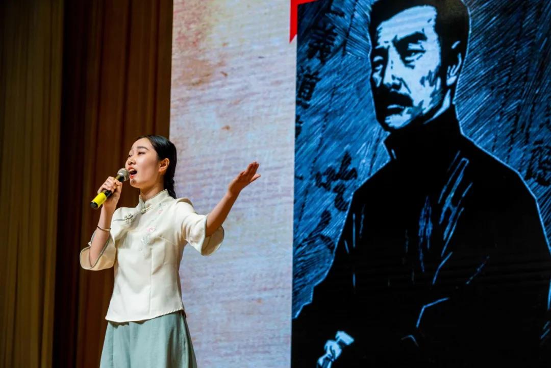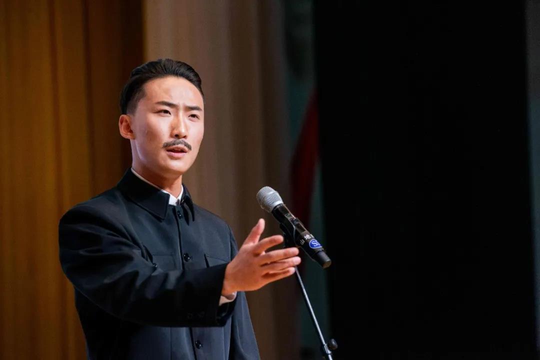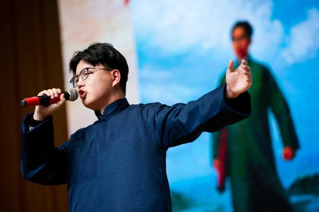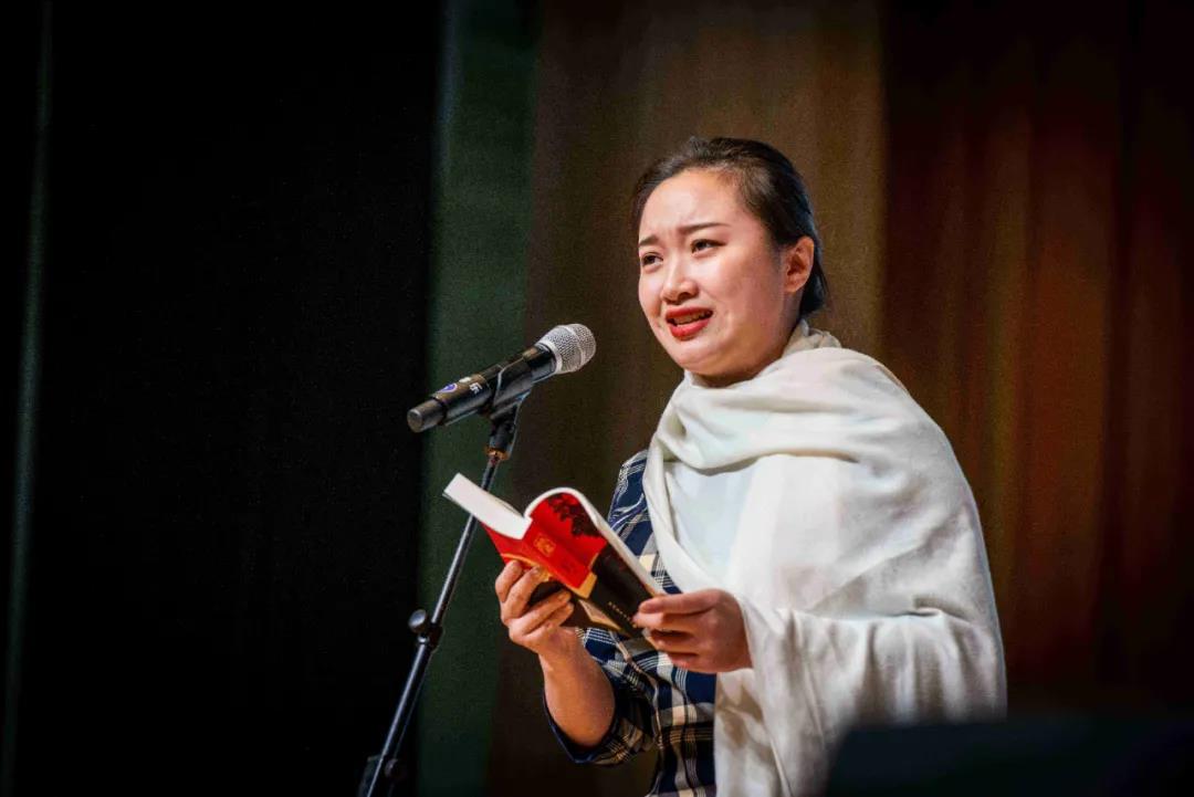 接下来的红色经典诵读分为“红色诗意”、“红色向往”、“红色深情”三个篇章。诵读学生情绪饱满、诵读扣人心弦,现场的观众仿佛被带入到了那段峥嵘的岁月,时而潸然泪下,时而义愤填膺。最后在全体师生的掌声中,烟台大学第十七届读书节闭幕式暨红色经典诵读会圆满结束。