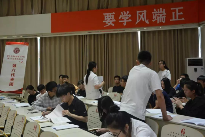 烟台大学化学化工学院第三次学生代表大会将全体代表分为六个代表团,分团审议阶段各代表团结合前期征集的提案对《烟台大学化学化工学院2018届学生会工作报告》和《烟台大学化学化工学院本科生联合会章程(修正案)》进行了审议。审议过程中,各代表团学生代表踊跃发言,表达了对学生会过去一年工作的充分肯定和对未来发展的诸多建议,让学生工作真正走近学生,学生代表切实反映需求和问题。院学生会多角度吸收建议,为学生会日后工作的完善开启了崭新征程。