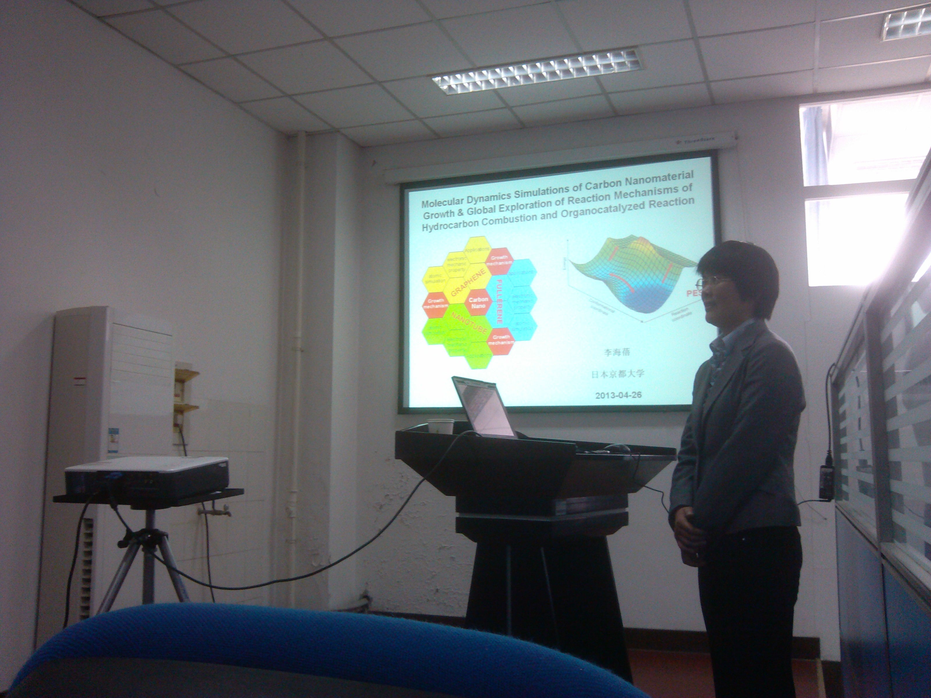 ,日本京都大学化学系博士后李海蓓来我校交流访问,并于26日下午在综合楼509小报告厅做了学术报告。我院部分老师、研究生及大四本科生认真听取了李博士的学术报告并进行了交流。