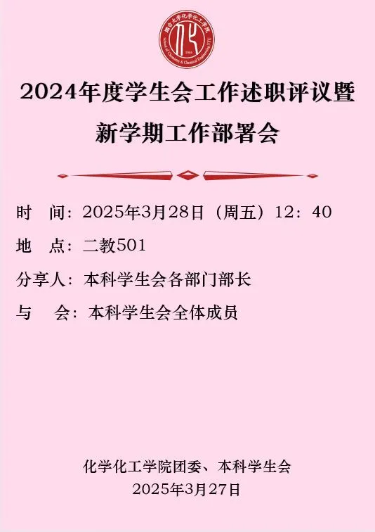 化学化工学院2024年度学生会工作述职评议暨新学期工作部署会预告