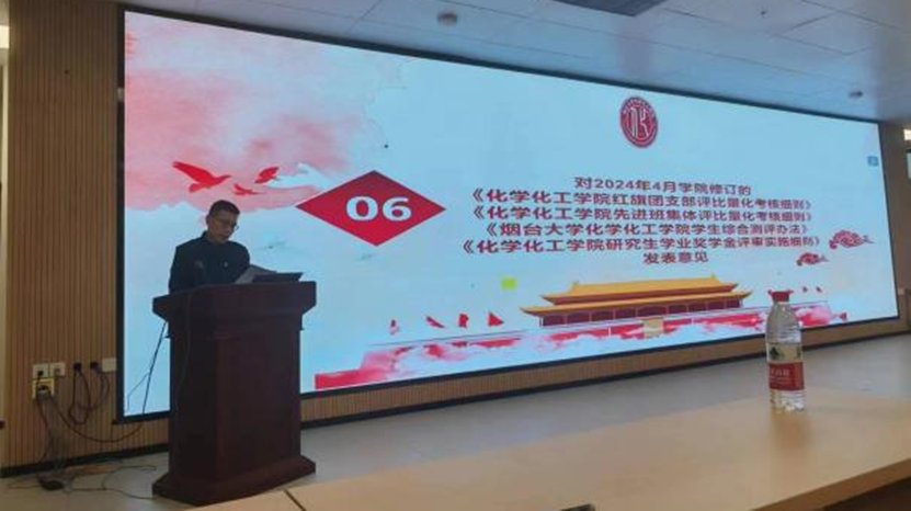 张成友老师代表学院接受2024年度烟台大学“红旗团委”颁奖。