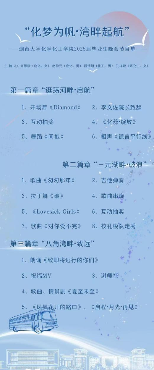 时光匆匆,毕业的钟声即将敲响。6月6日18:30,学子们翘首以盼的化学化工学院欢送2025届毕业生晚会即将拉开帷幕,我们满怀热忱地邀请您共赴这场青春盛宴!