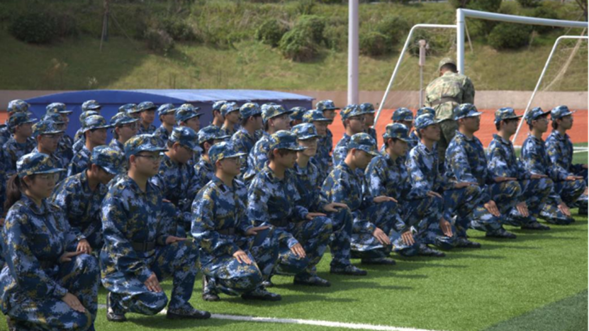 傍晚的操场褪去了白日的燥热,晚训的重点从队列训练转为军歌学唱。“全体都有,坐!”随着指令,“化小水”们整齐地坐好,目光专注地望向领唱的同学。