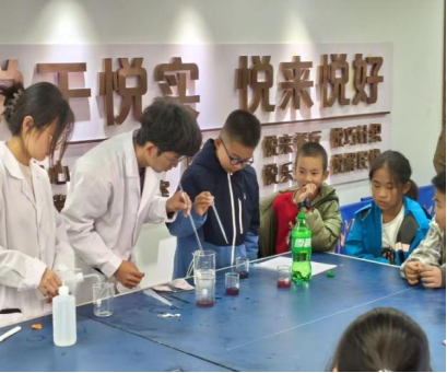 活动前,志愿者认真筛选适配儿童的实验项目,筹备安全试剂与器材,联动社区完成前期部署。活动中,“淀粉遇碘变色”“紫甘蓝汁酸碱反应”等实验引发孩子们浓厚兴趣,清澈液体的色彩变幻让大家目不转睛、踊跃提问。志愿者用通俗语言讲解原理,并引导孩子们动手操作,现场氛围热烈。