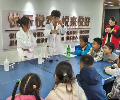 2025年11月22日,烟台大学化学化工学院志愿服务部赴悦海社区开展化学科普志愿活动,以趣味化学实验点亮儿童科学探索热情。
