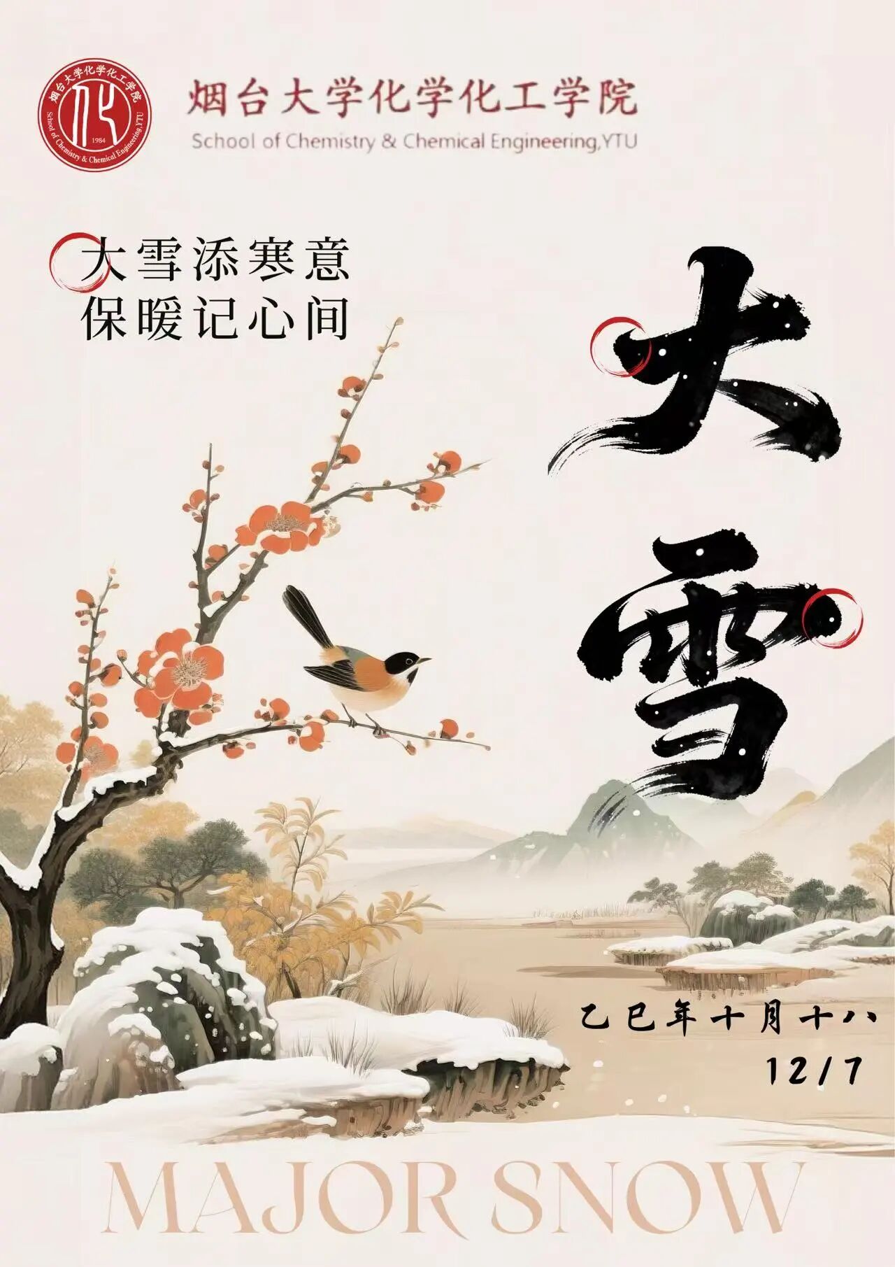 今日大雪 | 烟台大学化学化工学院祝大家:冬日日常暖乎乎,生活事事都顺意~