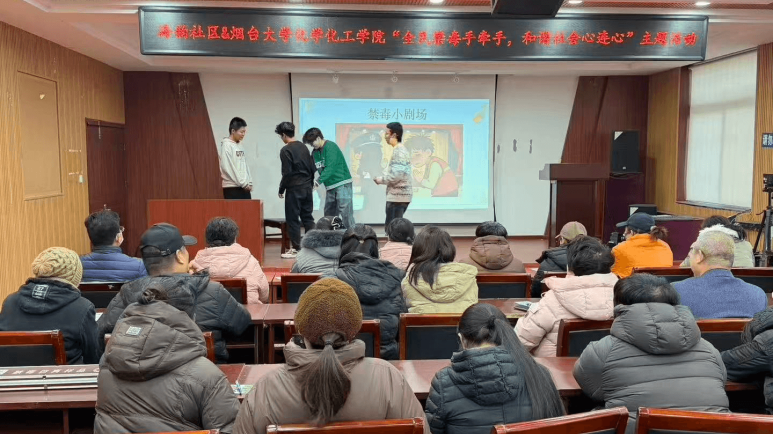 为进一步筑牢社区禁毒防线,提升居民识毒、防毒、拒毒意识,2025年12月11日,烟台大学“猎冰”禁毒志愿服务宣讲队与志愿服务部在福山区海韵花园联合开展了以“全民禁毒手牵手,和谐社会心连心”为主题的禁毒活动。