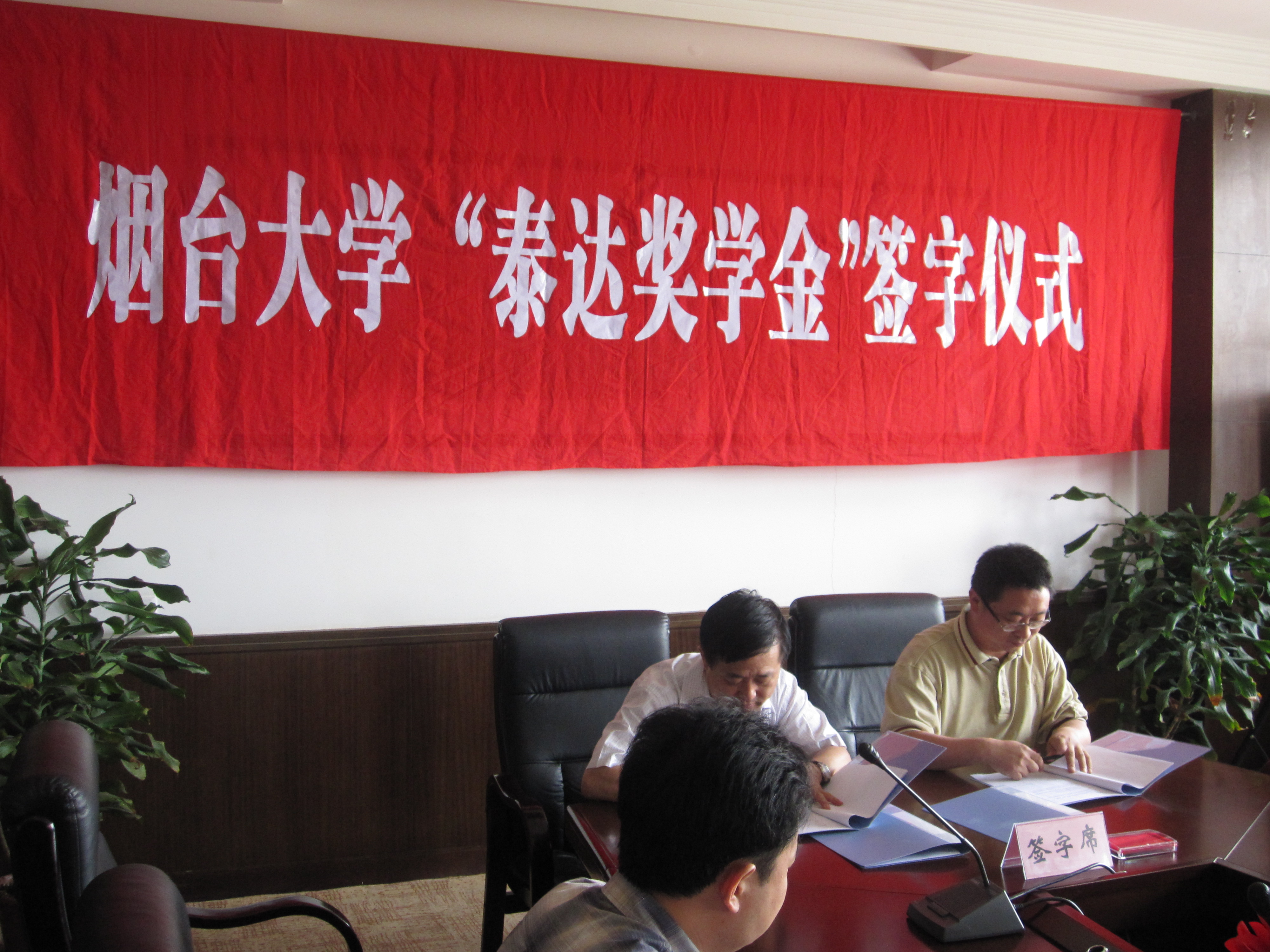 5月29日上午,烟台大学化学化工学院“泰达奖学金”签字仪式在我校综合楼第一会议室举行,烟台泰达集团董事长宋华西,烟台泰达集团副董事长张宝英,泰达集团办公室主任牛韶杰一行三人,烟台大学副校长孙祥斌,化学化工学院院长任万忠,院党委书记邬旭然,副院长索掌怀,学工部副部长王海丽、院团委副书记邱文伟、辅导员范俊卿及部分学生代表参加了签字仪式。签字仪式由院党委书记邬旭然主持。