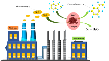 温室气体过量排放引起的全球变暖是国际社会普遍关注的环境问题。虽然氧化亚氮(N2O)在大气中的浓度较低,但其温室效应潜值(GWP)是CO2的310倍,是《京都议定书》限制排放的六种温室气体之一。N2O还破坏大气臭氧层,对生态环境构成了严重威胁。因此,有效减排N2O废气是很有意义的研究课题。