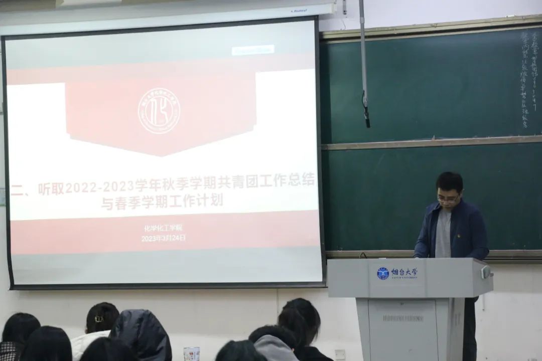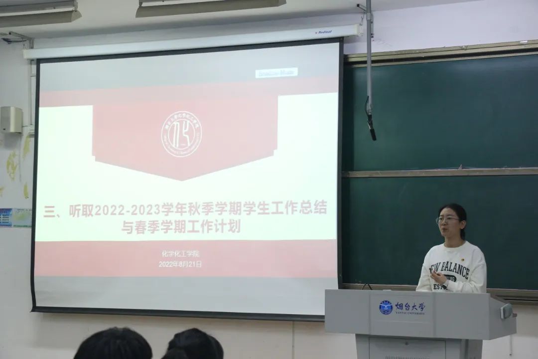 大会第六项,在前期反复修改和征求学生干部、代表等意见的基础上,张成友老师就《化学化工学院红旗团支部评比量化考核细则》《化学化工学院先进班集体评比量化考核细则》《烟台大学化学化工学院学生宿舍管理办法》《烟台大学化学化工学院学生奖惩办法》《烟台大学化学化工学院学生综合测评办法》再次征求团学代表的意见及建议。最后,张成友老师从“守牢底线确保安全稳定、服务为先做好管理服务、坚强文化建设打造特色学生工作品牌”三个方面对本学期的学生工作重点进行了强调,并再次对学生日常服务教育管理的各项纪律和要求做出了明确的提醒和要求。最后,全体团学代表和教师起立,奏唱团歌,会议圆满结束。