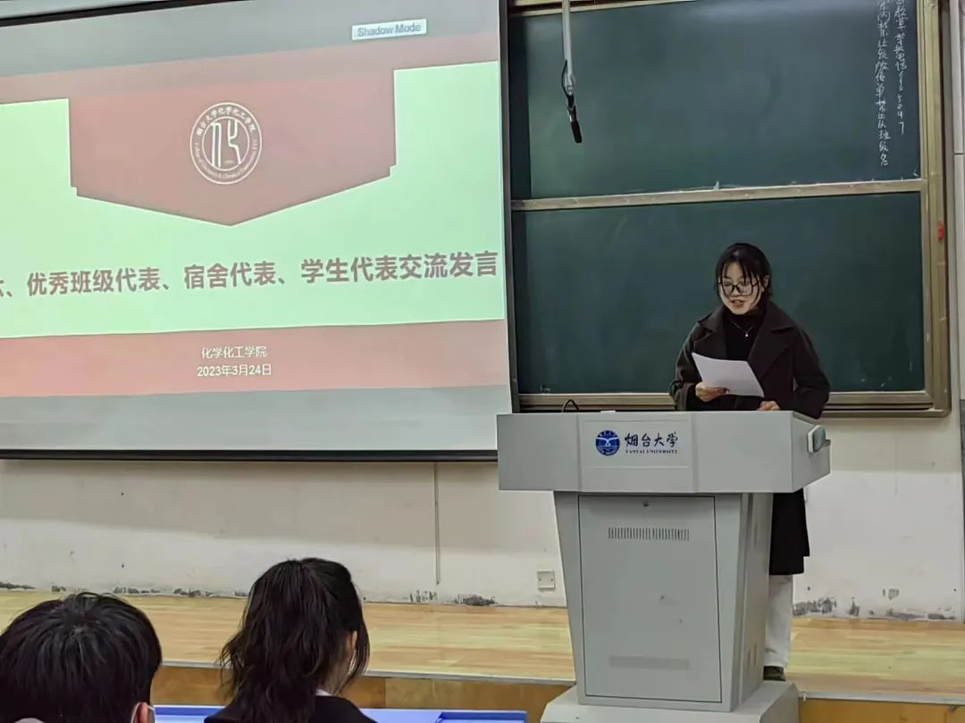 接下来,工作优秀的集体和个人代表做交流发言。201-1班周嘉宁同学作为优秀班级代表,围绕如何提升班级凝聚力,营造良好的学风进行了交流分享。来自应211-1班北1#428宿舍的石明晨同学作为优秀宿舍代表,结合自己宿舍上学期成绩全A的经验,结合营造更好的宿舍文化氛围,进行了主题交流分享。来自应201-2班的朱亚茹同学作为优秀学生代表分享了自己学习与科研经历。她表示,大学是学习的天堂,成长的殿堂,应当珍惜韶华,不负时光。