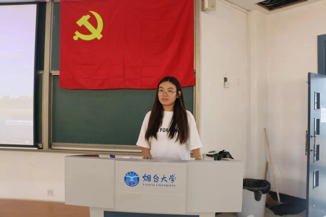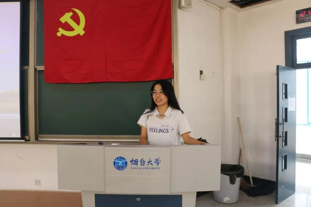 董世佳同学作为一名积极分子来谈自己的感受,她一直努力向党组织靠拢,在这个特殊的日子,董世佳同学阐述了她的入党初心和入党动机,表达了她对中国共产党的向往和热爱,并且表示在未来她会更加严格地要求自己,紧跟党走。