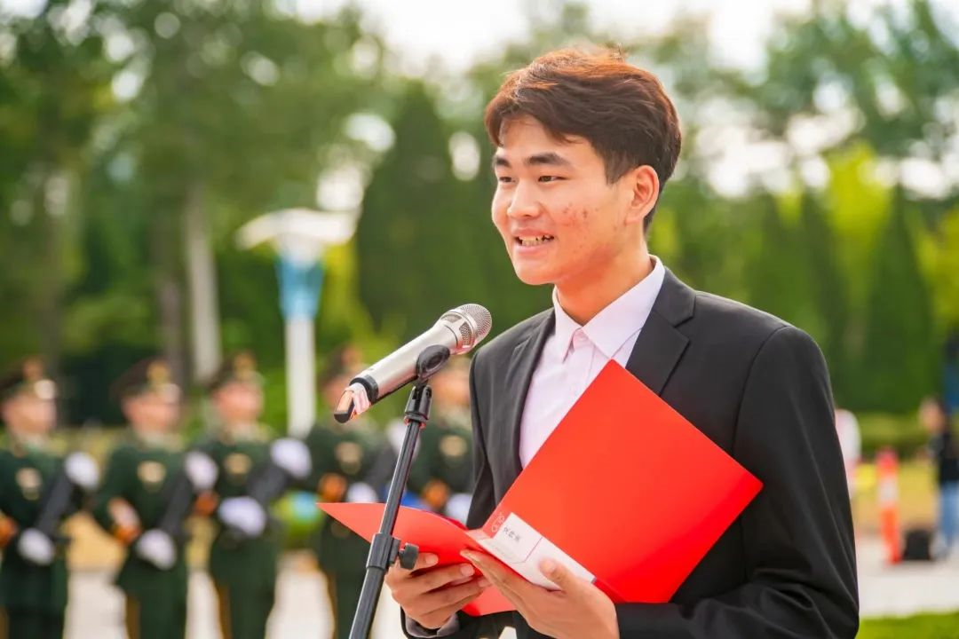 “我以青春的名义,庄严宣誓:热爱我的祖国,紧跟党的步伐,做祖国母亲忠实的拥护者,坚持‘守信、求实、好学、力行’的校训……”学生代表化学化工学院马晓宇同学带领现场学生代表在鲜艳的五星红旗下庄严宣誓。