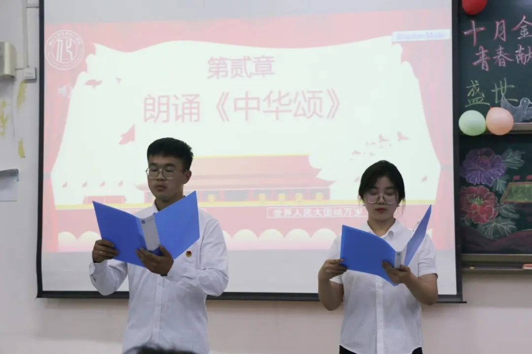 本次团日活动包含“‘致敬祖国’观影活动”、“写给祖国的‘三行情诗’”、“学唱国歌、团歌”等系列活动,从《忆往昔》、《看今朝》、《嘱未来》三个篇章展开。