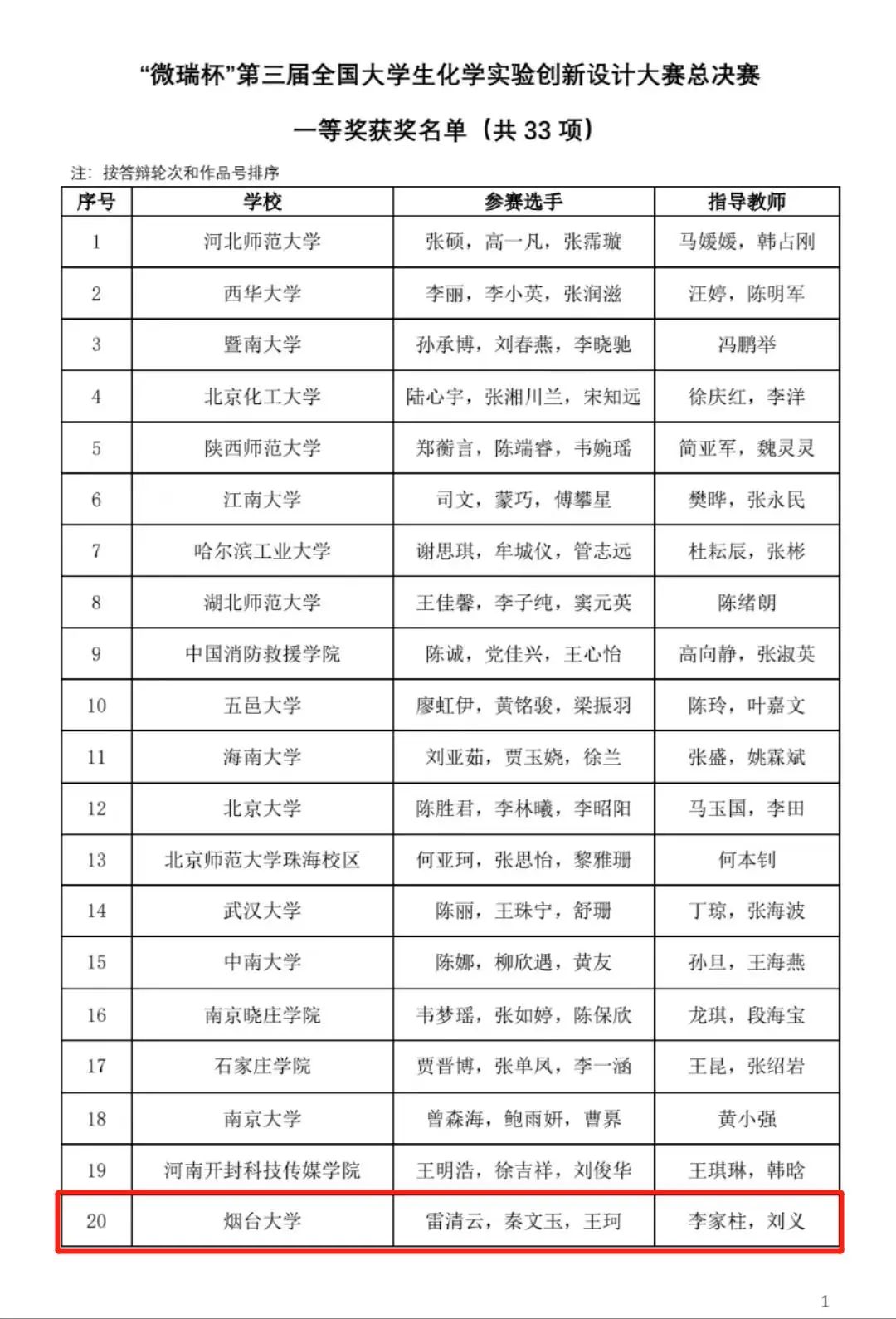 近日,由中国化学会、教育部高等学校国家级实验教学示范中心联席会等主办,厦门大学承办的“微瑞杯”第三届全国大学生化学实验创新设计大赛总决赛落下帷幕。我院2020级本科生雷清云、秦文玉和王珂,在教师李家柱和刘义的指导下,凭借作品《重氮盐合成实验的改进与拓展》,勇夺全国总决赛一等奖。