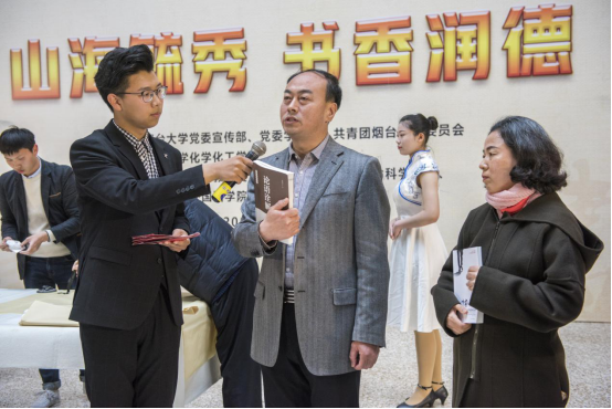 党委学工部部长赵利江老师、化学化工学院金明善教授和生命科学学院学生代表巩佳琦同学现场向师生们推荐了自己喜爱的好书。更多老师、同学们推荐的好书,将在化学化工学院微信公众号“烟大化院”里公布,希望能为大家的书单提供更多的选择。