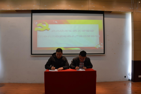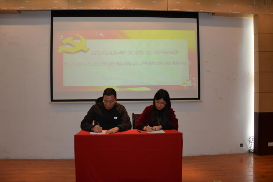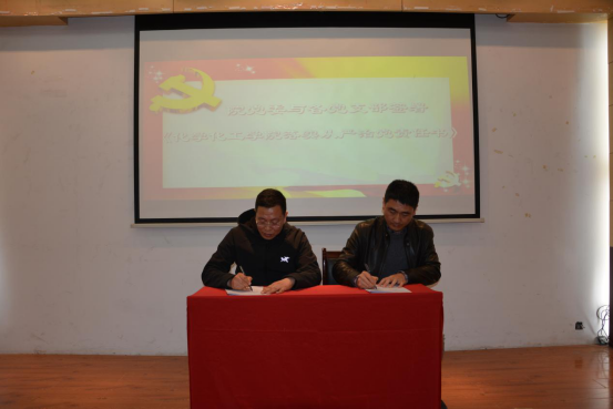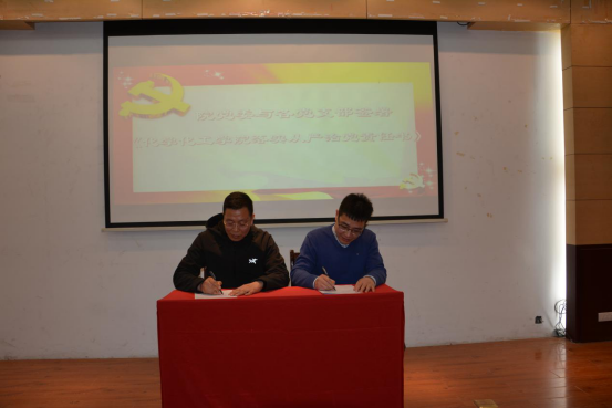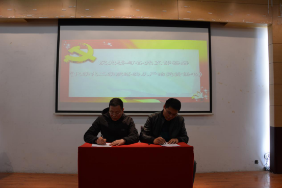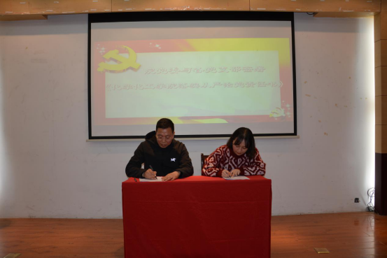 同时,为进一步深入推进全面从严治党,落实党风廉政建设主体责任和监督责任,严明政治纪律和政治规矩,学院党委与各党支部签订责任书。胡大鹏首先代表学院党委宣读了《化学化工学院落实从严治党责任书》和《化学化工学院各党支部意识形态工作责任制责任书》,随后学院党委书记段志国同志分别与教工党支部书记、学生党支部书记签订了以上两份责任书。