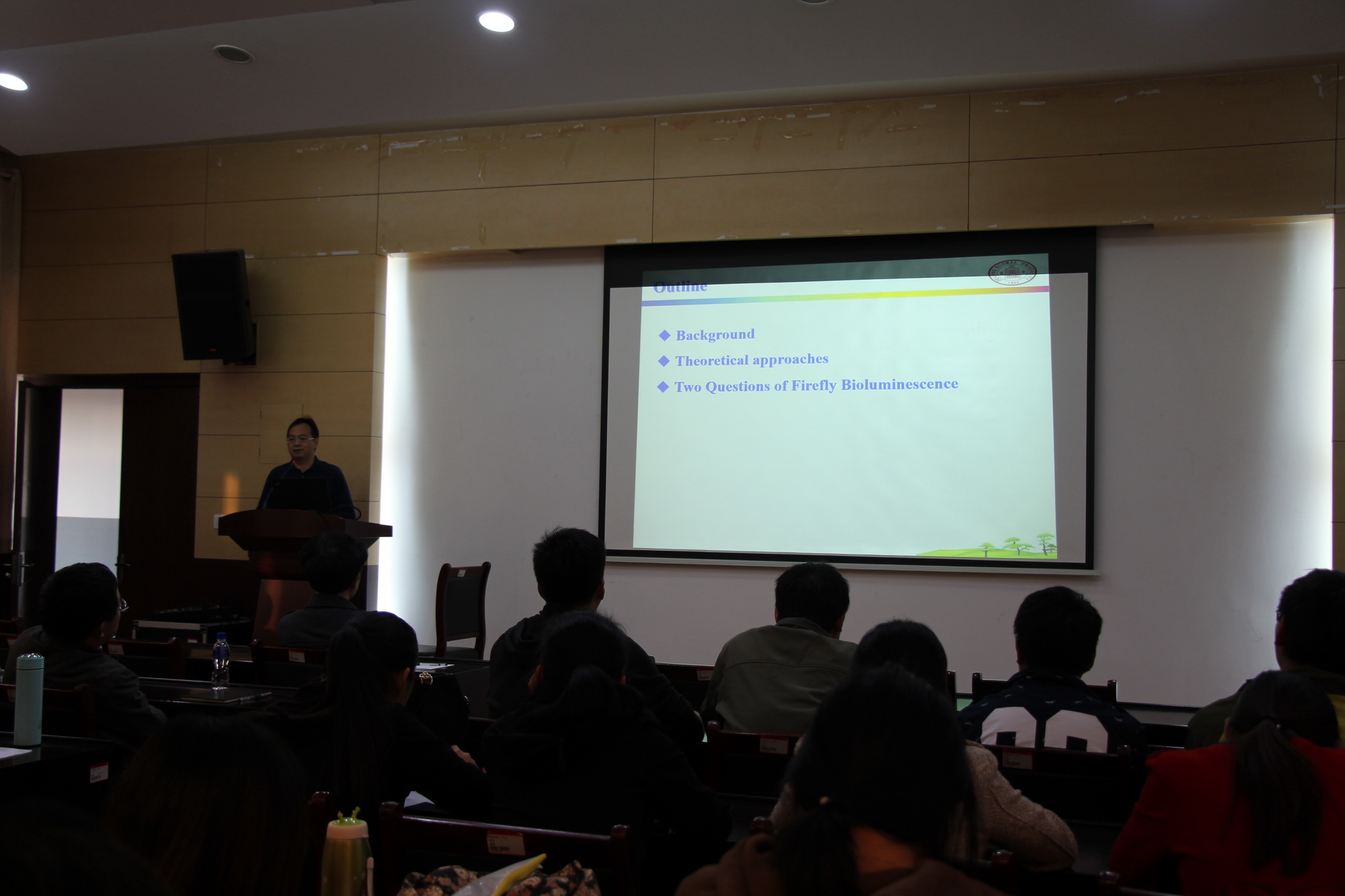 教授用通俗易懂的语言,详细介绍了生物发光的研究背景和研究方法,并以萤火虫发光机制研究中两个有趣的问题为例子,展现了量子化学计算在这一领域的应用。报告图文并茂,深入浅出,精彩纷呈,不仅使大家了解了