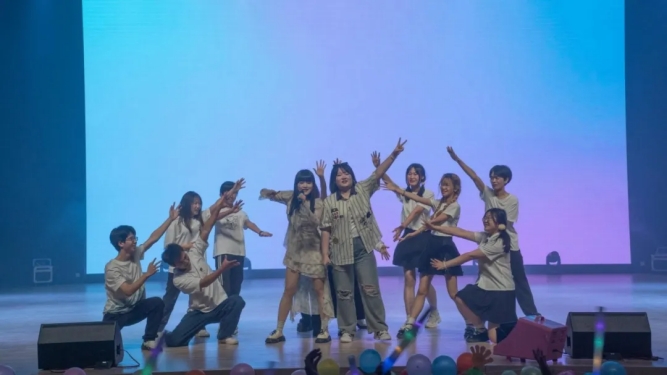 全体辅导员老师和学生干部代表带来歌曲《红蜻蜓》《光阴的故事》。