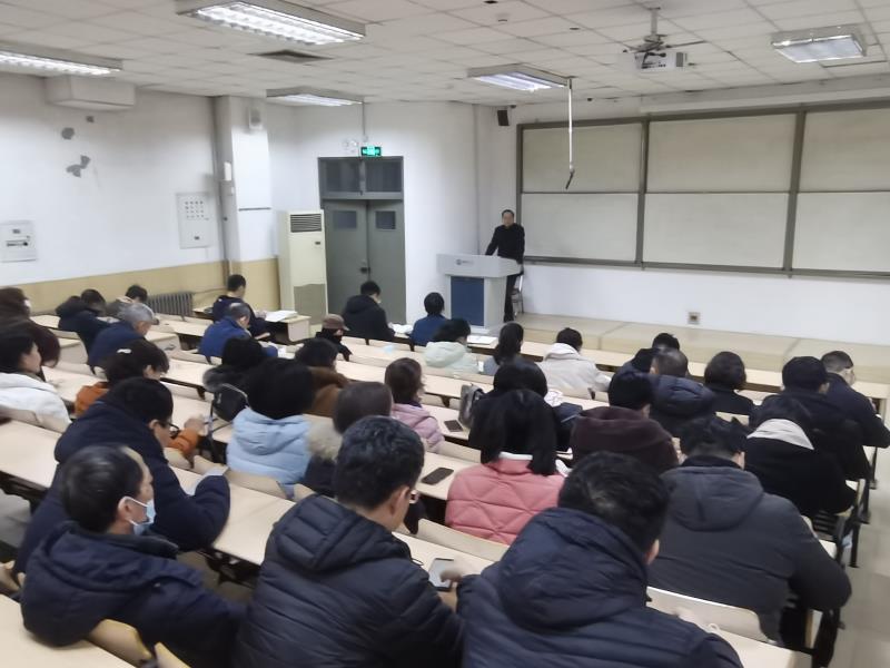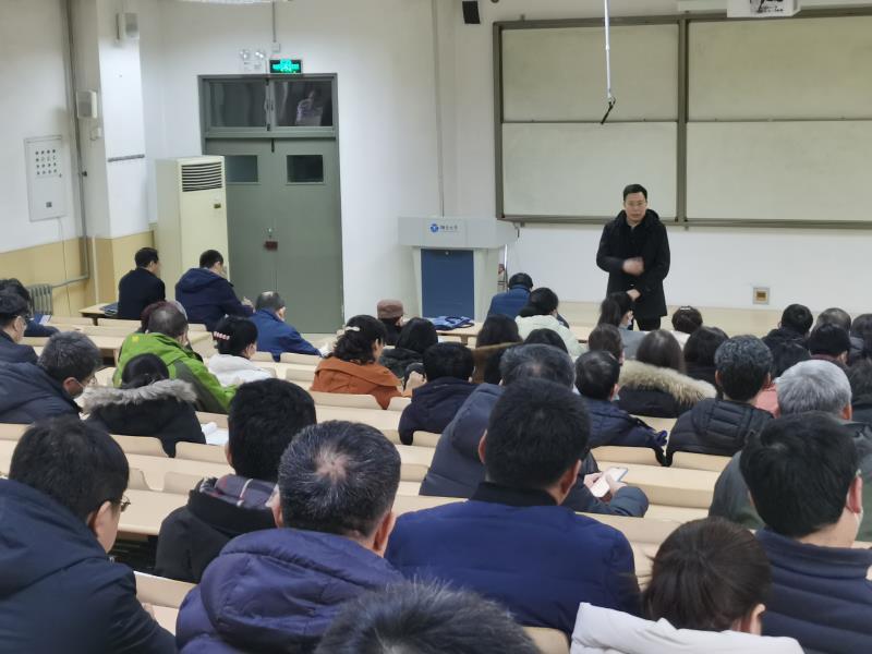 在全院教职工大会上,院党委书记段志国首先从强化学科建设、冲击博士点、建设高水平大学等方面,深入细致地传达了学校2021年工作研讨会的内容和精神。然后,段志国对学院今年的工作做了整体部署并提出了要求。他最后说,要对标好的学校和学院,学人之长、补己之短;所有工作最终还是要落实,要实干;每一位教职员工都应当将自己的热爱与学校的发展融为一体,要与学校荣辱与共,要带着感情工作!