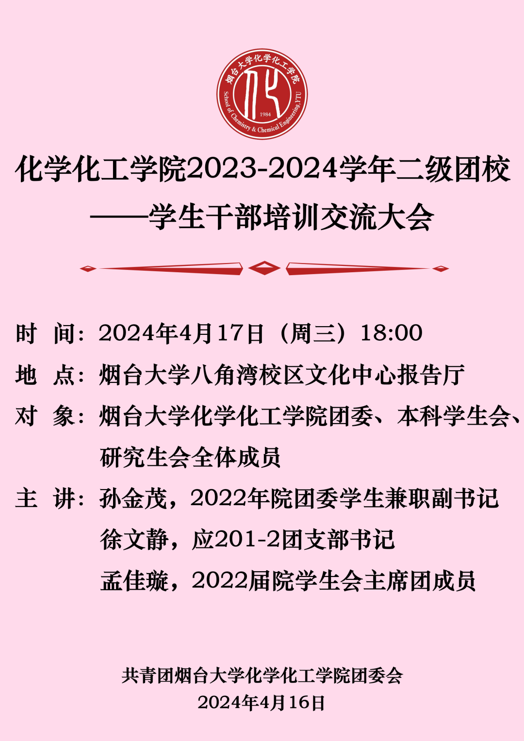 化学化工学院2023-2024学年二级党、团校 |新学期学生干部培训交流大会