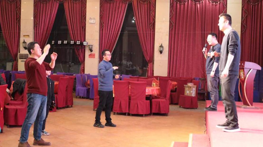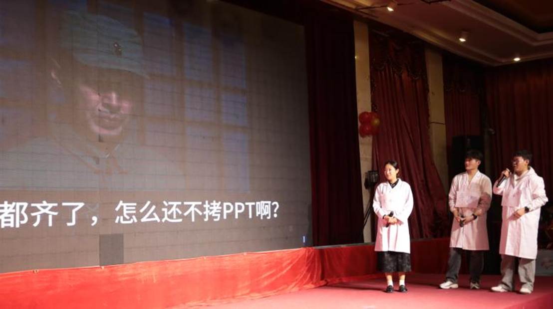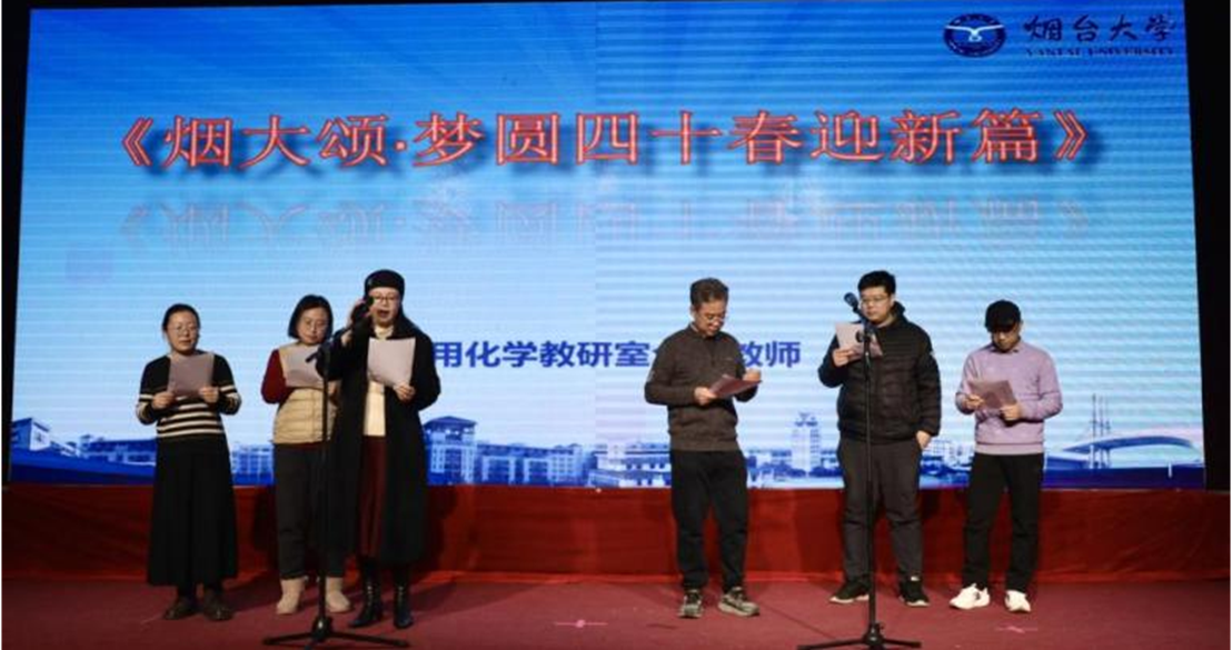 各工会小组准备了丰富多彩的节目,应化教研室带来的诗朗诵《烟大颂·梦圆四十春迎新篇》,深情地回顾了学校四十年来的发展历程及辉煌成就。男声独唱《新贵妃醉酒》、配音短剧《开组会》及“你来比划我来猜”、“新年一起抖起来!”等精彩纷呈的表演和游戏赢得了阵阵掌声。行政组选送的歌舞《舞动未来》则将晚会气氛推向高潮。