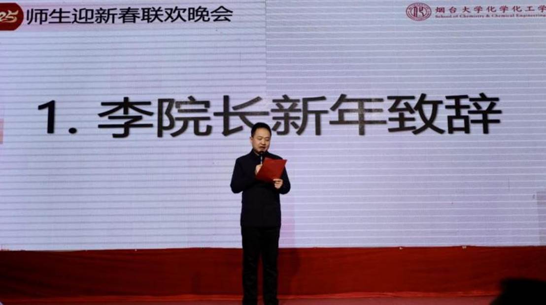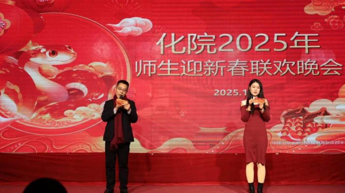 1月4日下午,化学化工学院师生迎新春联欢晚会在于潍纮学术中心隆重举行。学院领导、全体教职员工、2024年退休教师、学生代表参加晚会,辅导员张成友、赵锦泽主持。