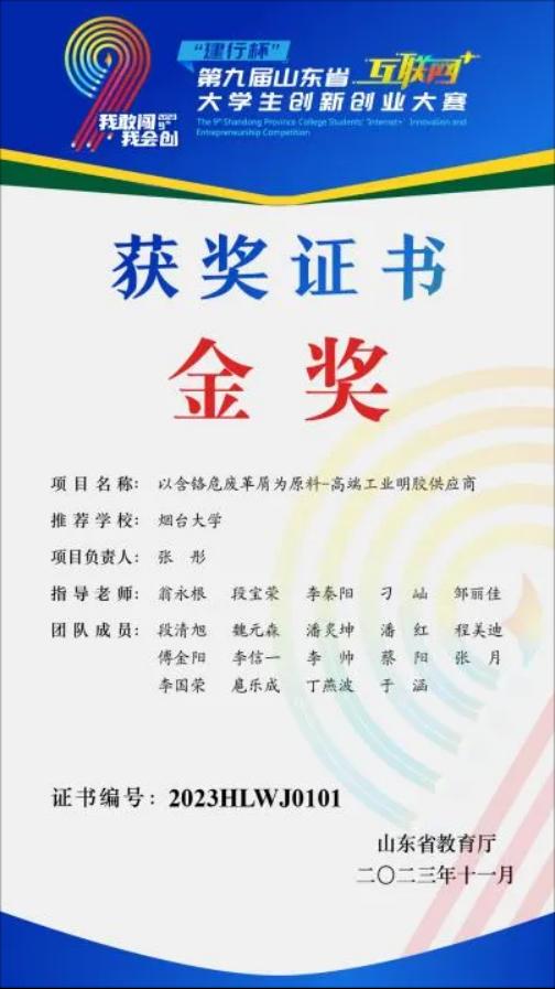大三期间,张彤参加了烟台大学2023年大学生创新创业计划立项、首届青年绿色科技创新大赛。经过三年的比赛历程,张彤实现了从一个学习者到团队引导者角色的转换,随着更多初学者的加入,必然会产生许多的思想碰撞,但是张彤告诉我们:“既然踏入这个行列,就要学会自己摸索,好事多磨,总会成功的”。